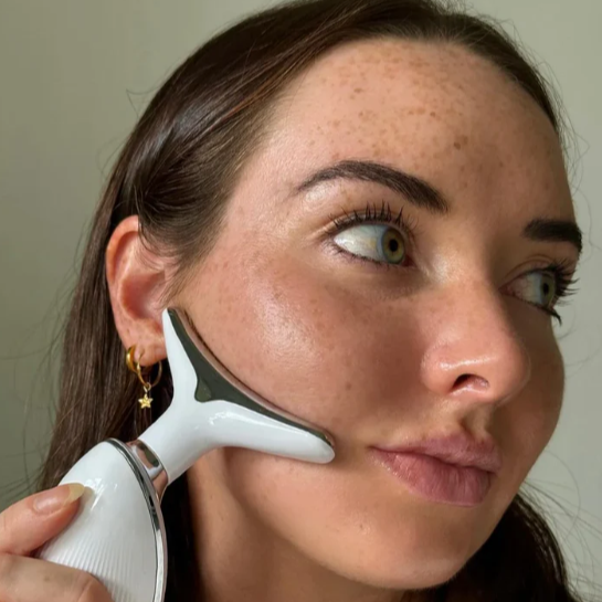 Lumvera pairs gentle microcurrent with targeted LED light. Microcurrent delivers low-level electrical signals across the skin to support tone and definition. LED adds targeted wavelengths to help with the look of fine lines, uneven tone, and acne. Together they create a fast 10-minute routine you can repeat at home.